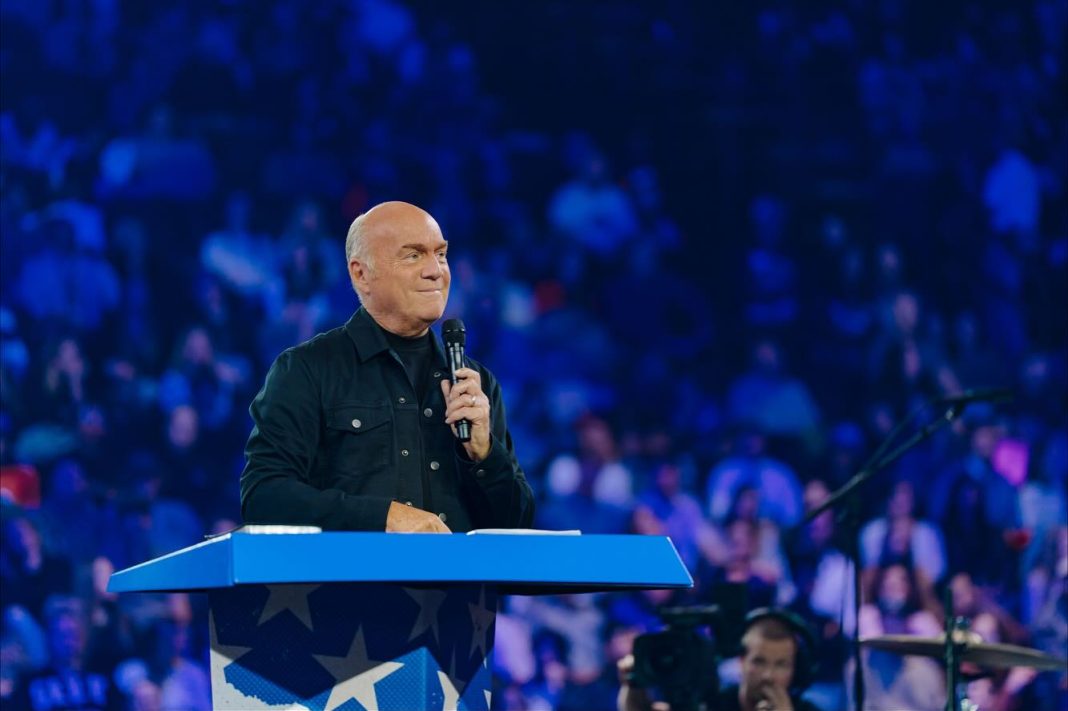 When Greg Laurie took the podium, he told those gathered: “Our friend Charlie Kirk [was] tragically killed, but when he took his last breath on earth, he took his first breath in Heaven. Not because of what he did, but what Christ did for him,” according to reporting from CBN.com and Baptist Press.