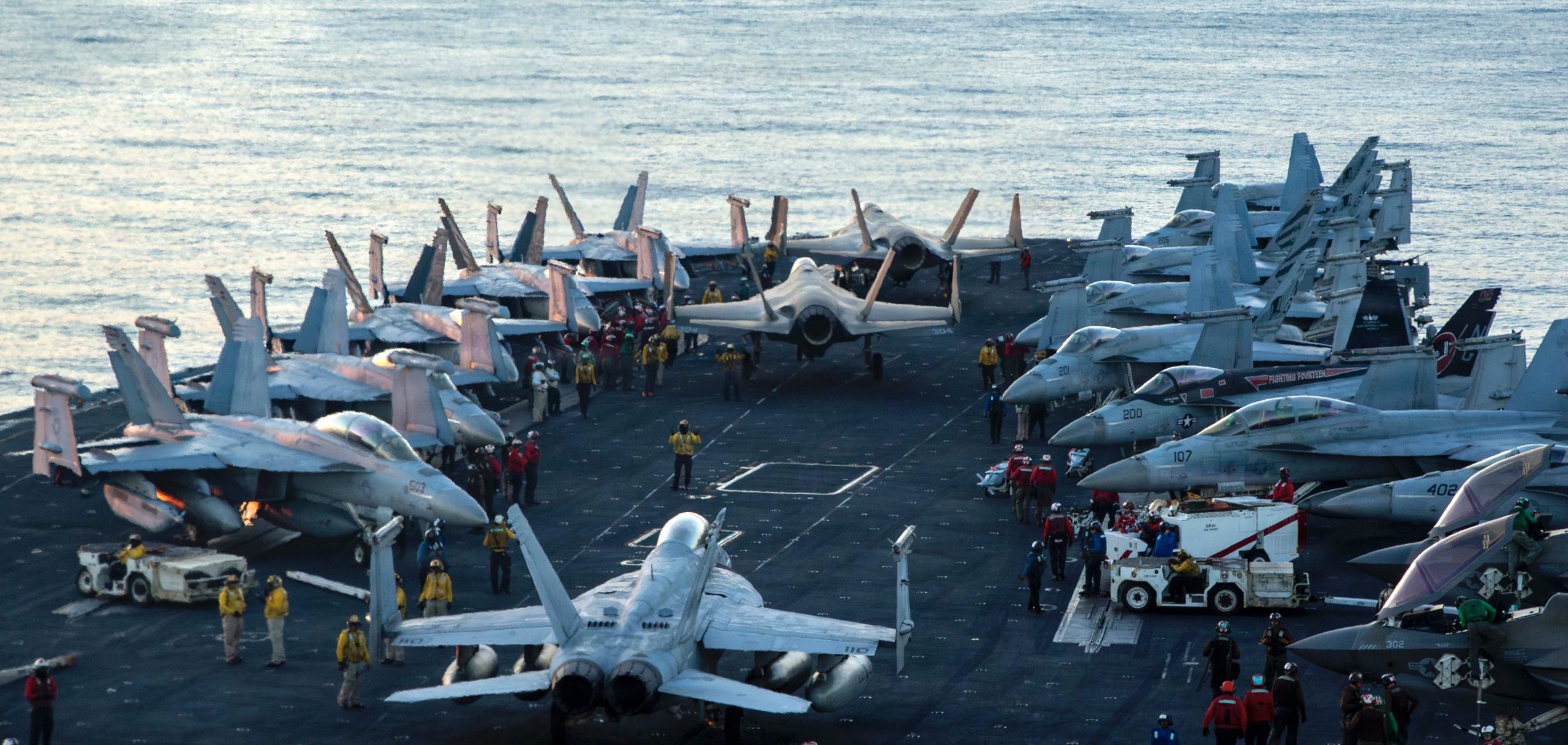 In a post on X, it shared images of EA-18G Growlers from Electronic Attack Squadron 133 and F-35C Lightning IIs from Marine Fighter Attack Squadron 314 preparing for launch from the flight deck of the USS Abraham Lincoln.