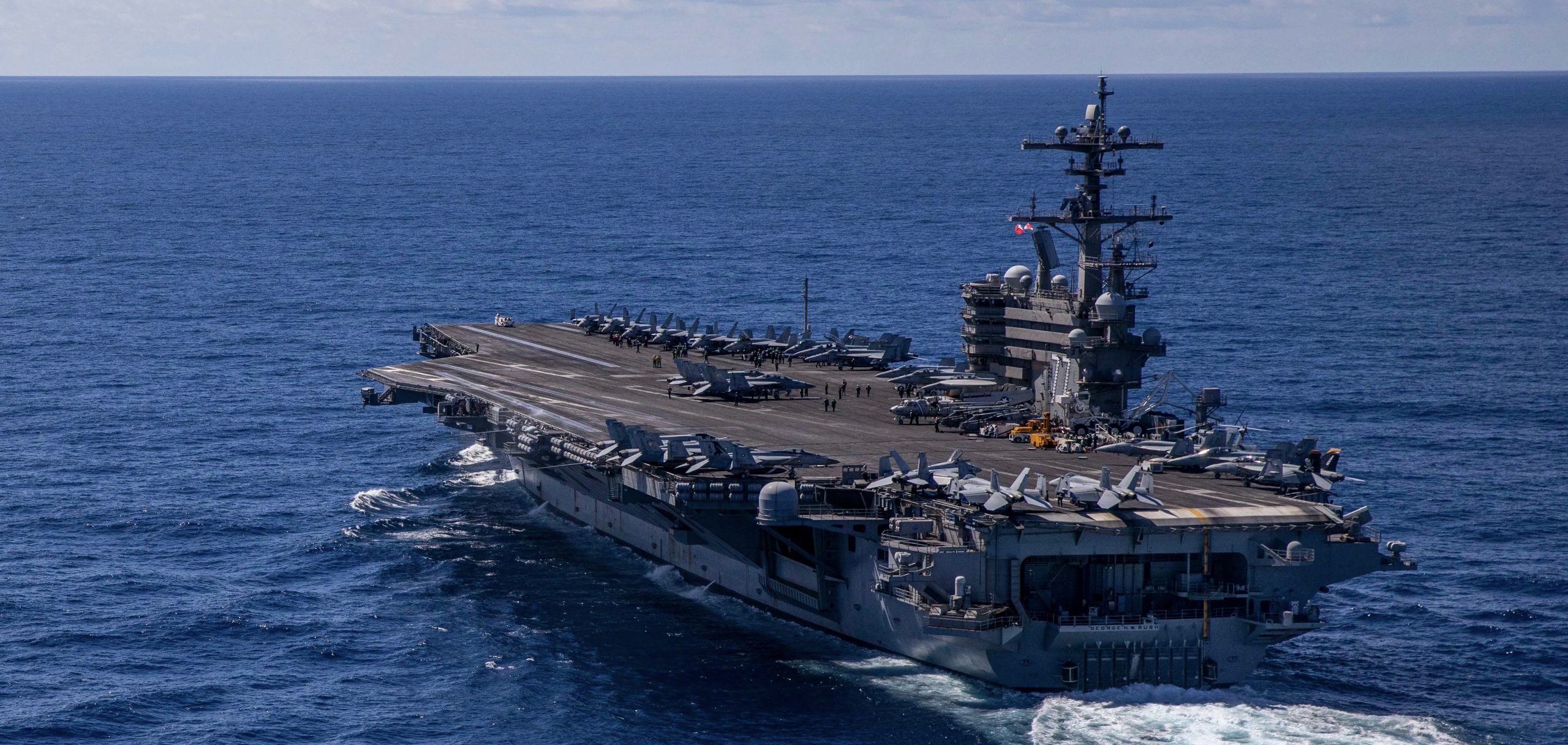 “Operating in international waters in the Middle East, the aircraft carrier conducts around-the-clock flight operations in support of regional security,” the post said.